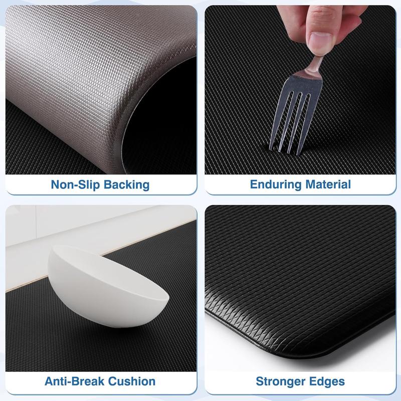 Anti-Fatigue Comfort: kitchen mat offers supportive cushioning that eases strain on your feet and joints, allowing you to stand comfortably for longer periods in the kitchen